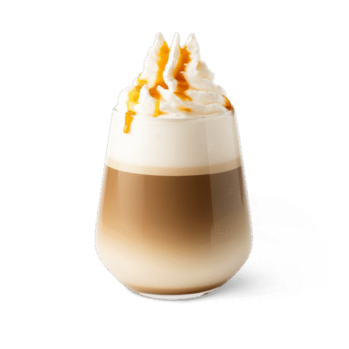ترکیب یک شات اسپرسو لانگو، طعم دهنده کارامل، شیر با فوم کم، با تزیین خامه( 350میلی لیتر)